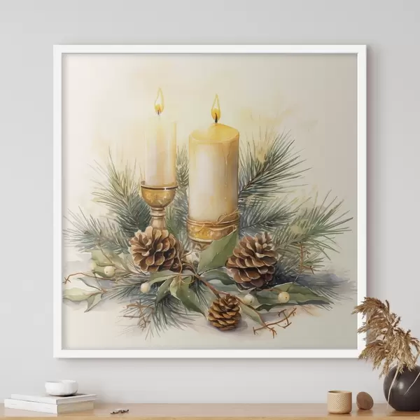 Постер на стіну Композиція, Новий рік, Ялинка і свічки Nr f46971