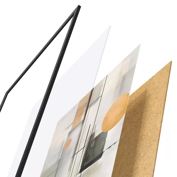 Постер складається з рами, оргскла, надрукованого зображення та підкладки з ДСП. Завдяки кріпленням на звороті плакат можна одразу ж повісити на стіну.