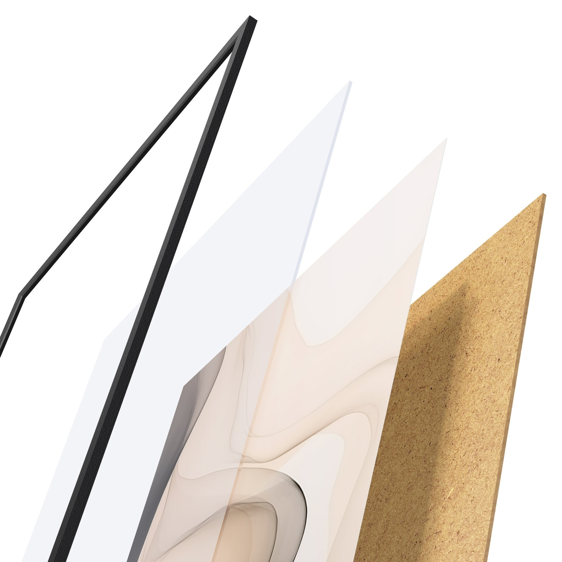 Постер складається з рами, оргскла, надрукованого зображення та підкладки з ДСП. Завдяки кріпленням на звороті плакат можна одразу ж повісити на стіну.