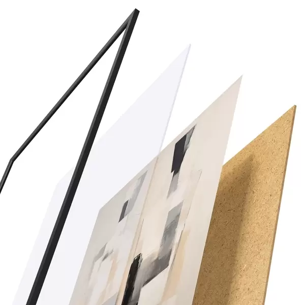 Постер складається з рами, оргскла, надрукованого зображення та підкладки з ДСП. Завдяки кріпленням на звороті плакат можна одразу ж повісити на стіну.