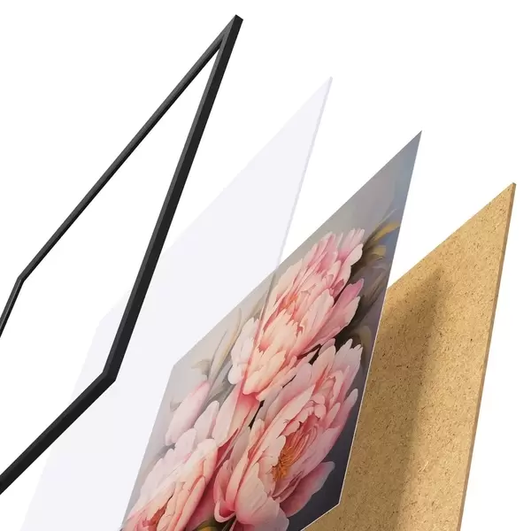 Постер складається з рами, оргскла, надрукованого зображення та підкладки з ДСП. Завдяки кріпленням на звороті плакат можна одразу ж повісити на стіну.
