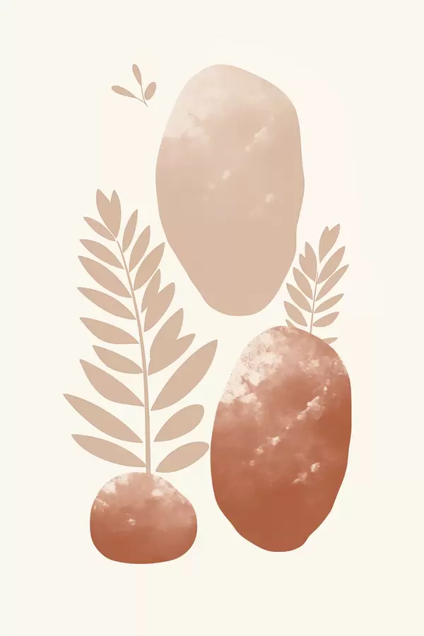 Постер на стіну Абстрактні форми, текстуровані камені та листя в приглушених персикових і теракотових тонах, мінімалістичний кремовий фон Nr f47012