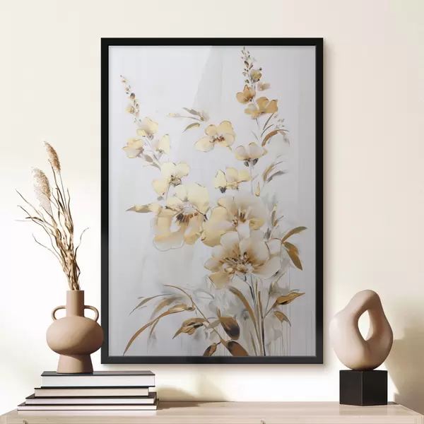Постер на стіну Текстуровані жовті квіти та листя на білому тлі, з ніжними мазками пензля Nr f47016