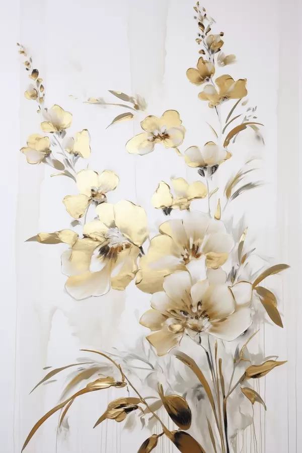 Постер на стіну Текстуровані жовті квіти та листя на білому тлі, з ніжними мазками пензля Nr f47016