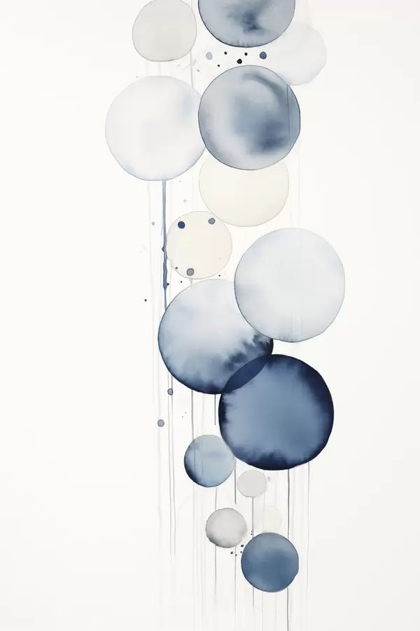 Постер на стіну Абстрактні текстуровані синьо-білі акварельні кола різного розміру на білому тлі Nr f47020