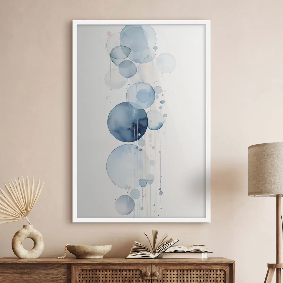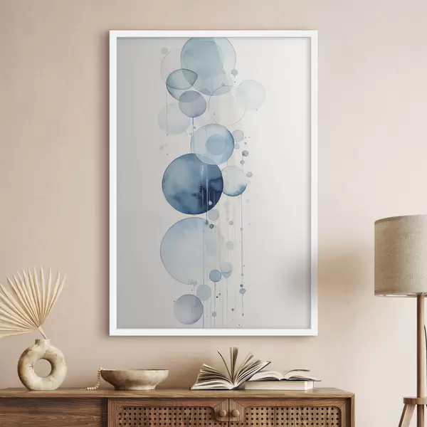 Постер на стіну Абстрактні текстуровані синьо-білі акварельні кола різного розміру на білому тлі Nr f47021