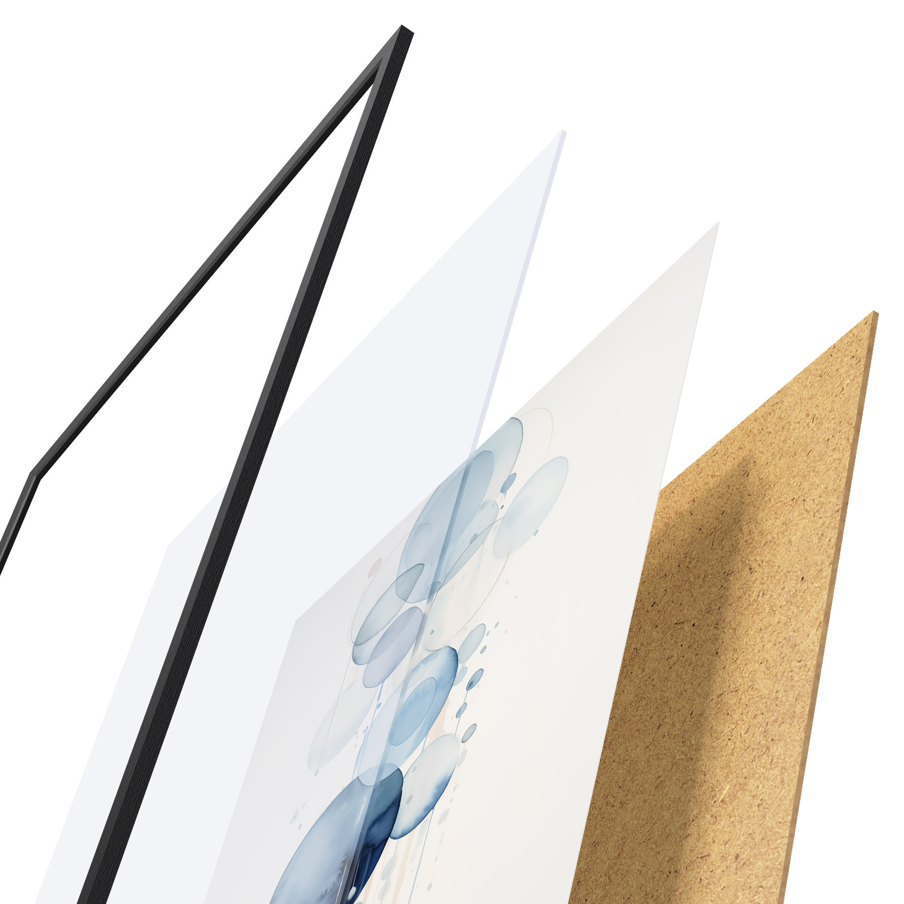 Постер складається з рами, оргскла, надрукованого зображення та підкладки з ДСП. Завдяки кріпленням на звороті плакат можна одразу ж повісити на стіну.