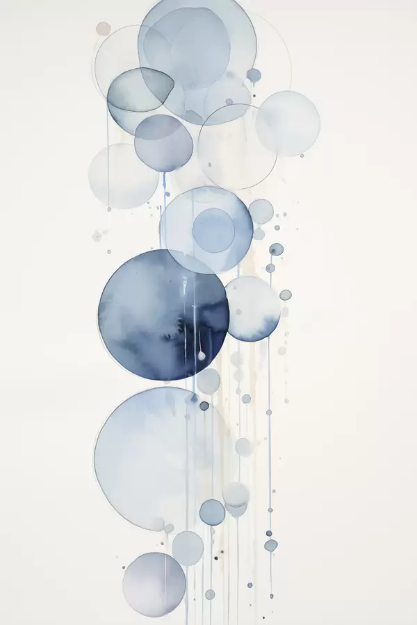 Постер на стіну Абстрактні текстуровані синьо-білі акварельні кола різного розміру на білому тлі Nr f47021