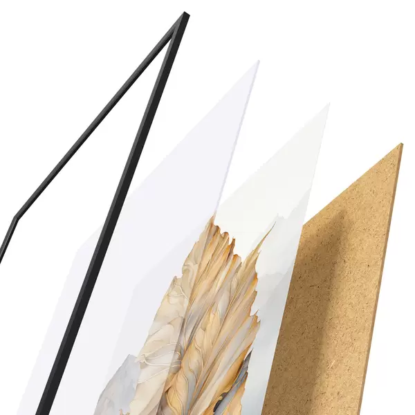 Постер складається з рами, оргскла, надрукованого зображення та підкладки з ДСП. Завдяки кріпленням на звороті плакат можна одразу ж повісити на стіну.