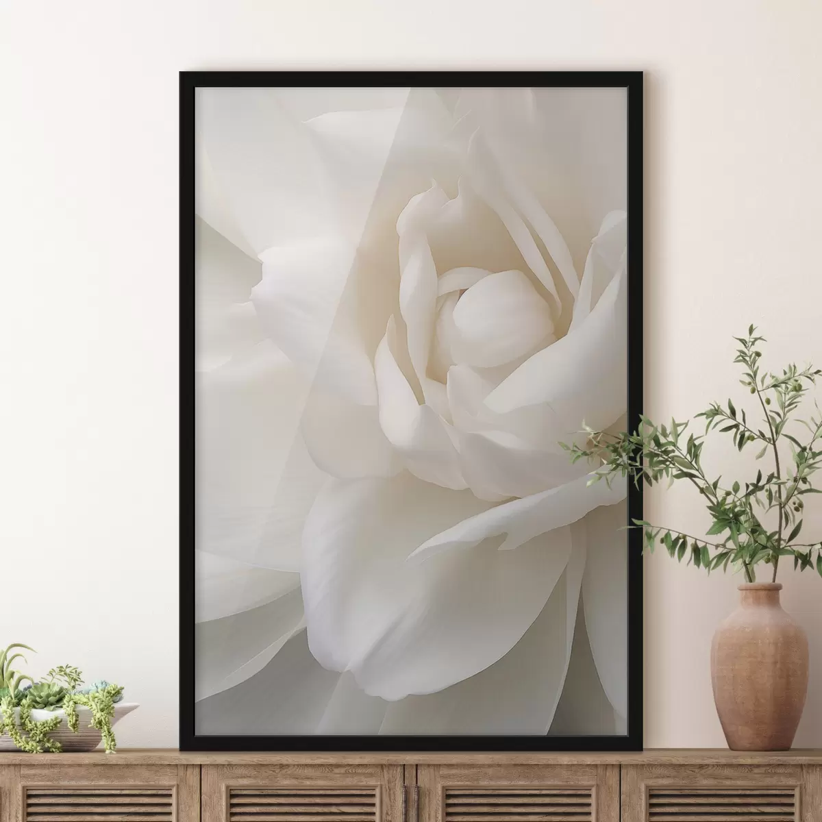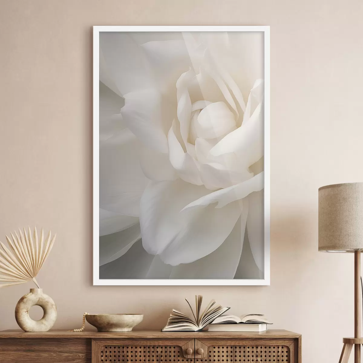 Постер на стіну Абстрактна біла квітка з ніжними, багатошаровими пелюстками, мінімалістичне мистецтво Nr f47025