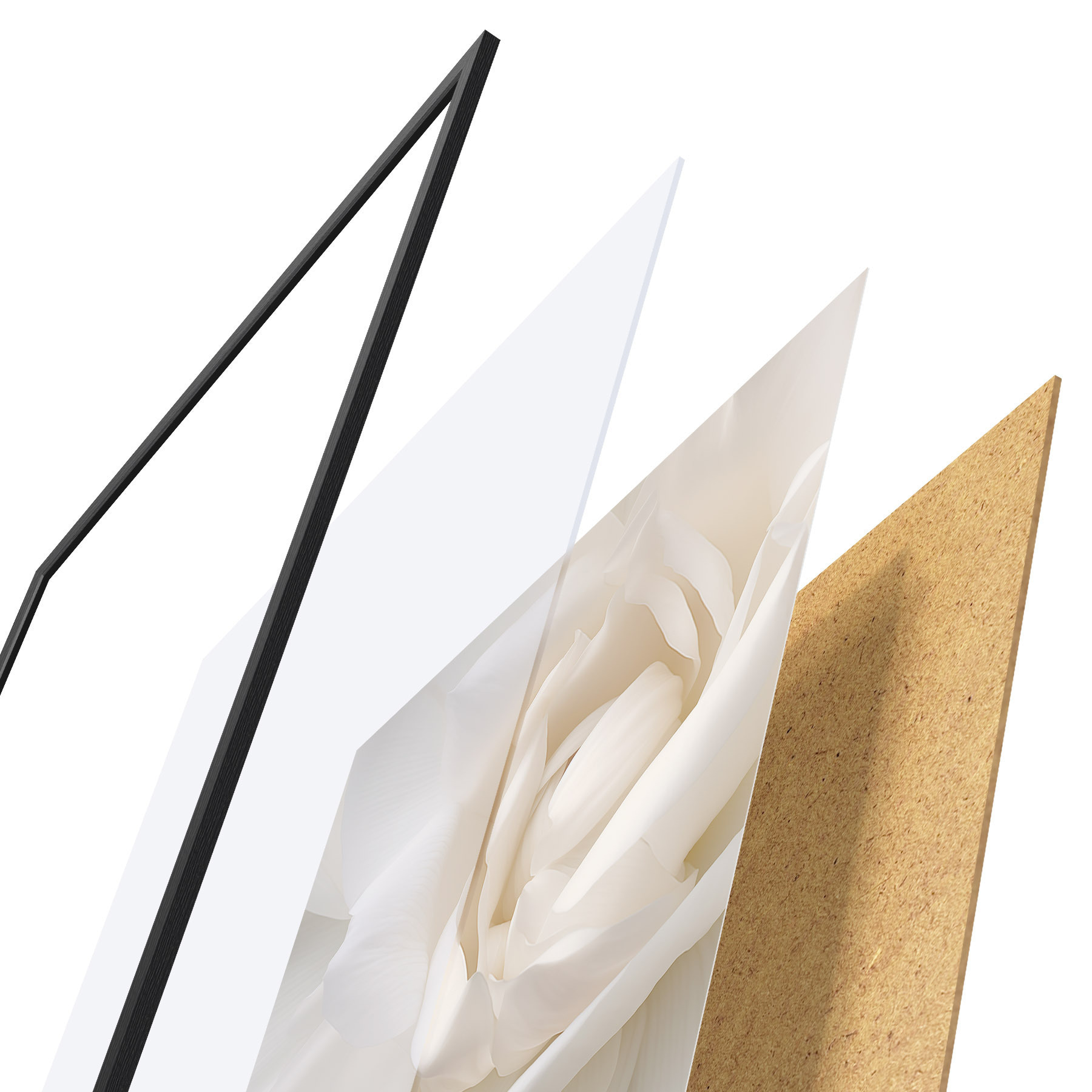 Постер складається з рами, оргскла, надрукованого зображення та підкладки з ДСП. Завдяки кріпленням на звороті плакат можна одразу ж повісити на стіну.