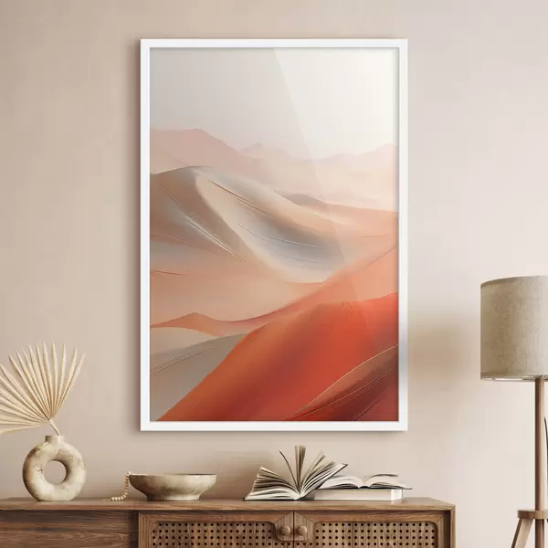 Постер на стіну Абстрактний пустельний пейзаж з хвилястими піщаними дюнами в теплих помаранчевих і білих тонах Nr f47030