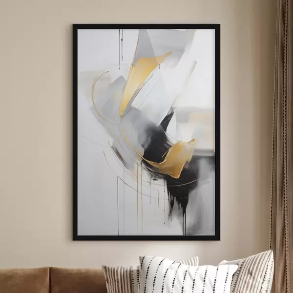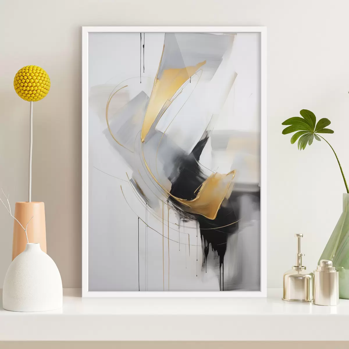 Постер на стіну Абстрактний живопис з імітацією жовтих, чорних і білих мазків, динамічні лінії Nr f47034