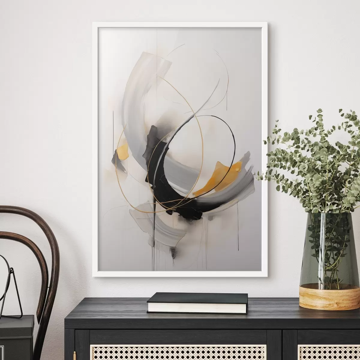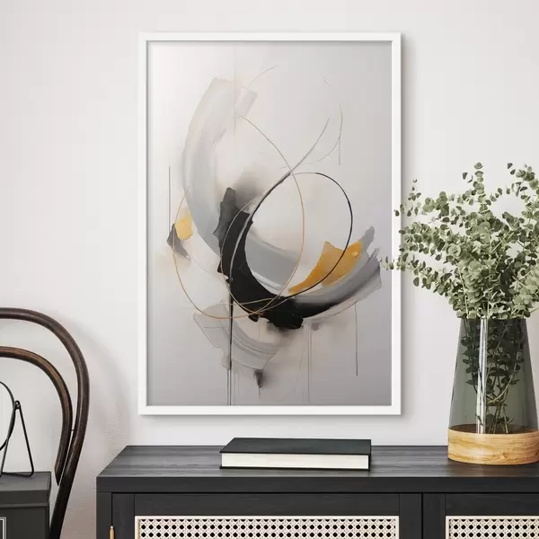 Постер на стіну Абстрактний живопис з імітацією жовтих, чорних і білих мазків, динамічні лінії Nr f47035