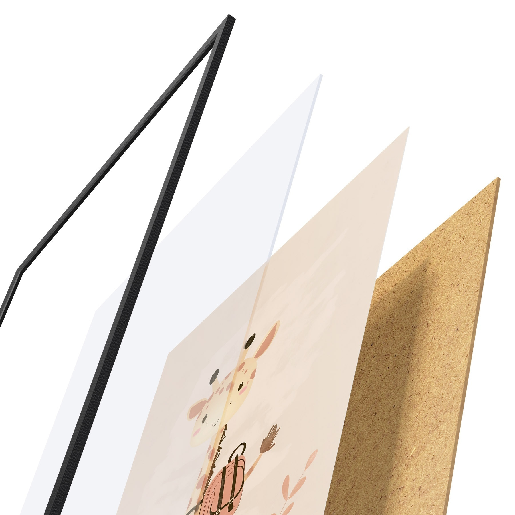 Постер складається з рами, оргскла, надрукованого зображення та підкладки з ДСП. Завдяки кріпленням на звороті плакат можна одразу ж повісити на стіну.
