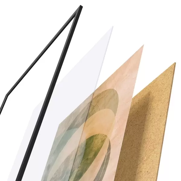 Постер складається з рами, оргскла, надрукованого зображення та підкладки з ДСП. Завдяки кріпленням на звороті плакат можна одразу ж повісити на стіну.