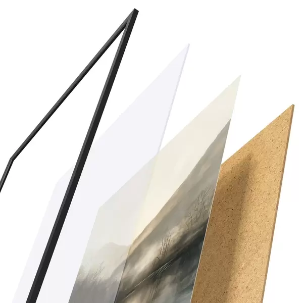Постер складається з рами, оргскла, надрукованого зображення та підкладки з ДСП. Завдяки кріпленням на звороті плакат можна одразу ж повісити на стіну.