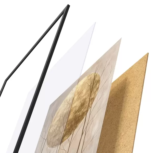 Постер складається з рами, оргскла, надрукованого зображення та підкладки з ДСП. Завдяки кріпленням на звороті плакат можна одразу ж повісити на стіну.