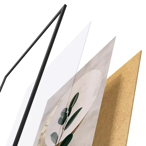 Постер складається з рами, оргскла, надрукованого зображення та підкладки з ДСП. Завдяки кріпленням на звороті плакат можна одразу ж повісити на стіну.