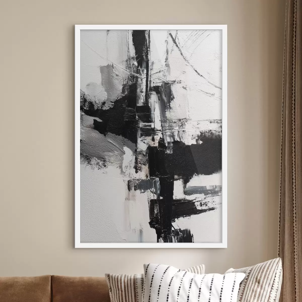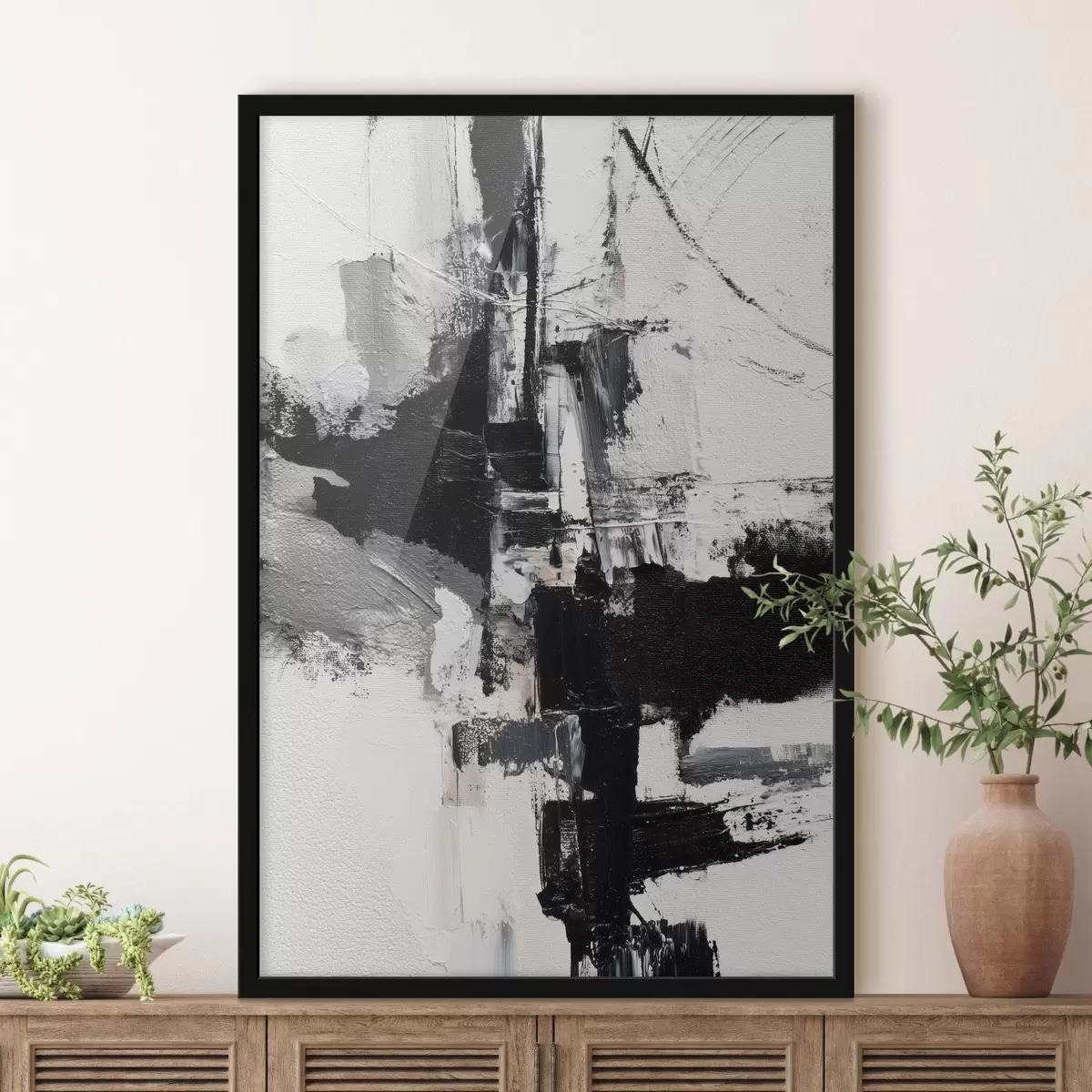 Постер на стіну Текстурована ілюстрація з контрастними чорними та сірими мазками в стилі олійного живопису Nr f47091