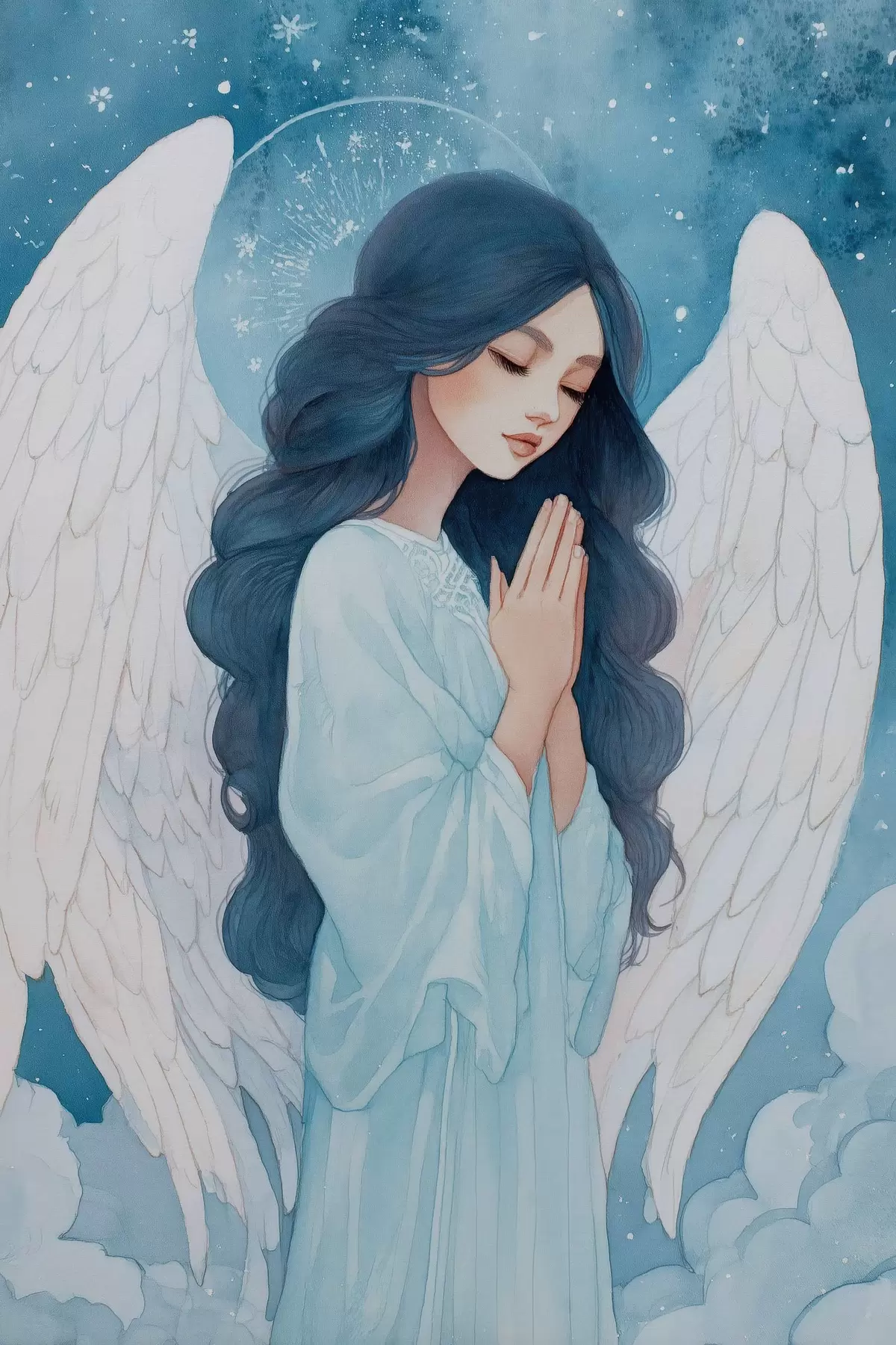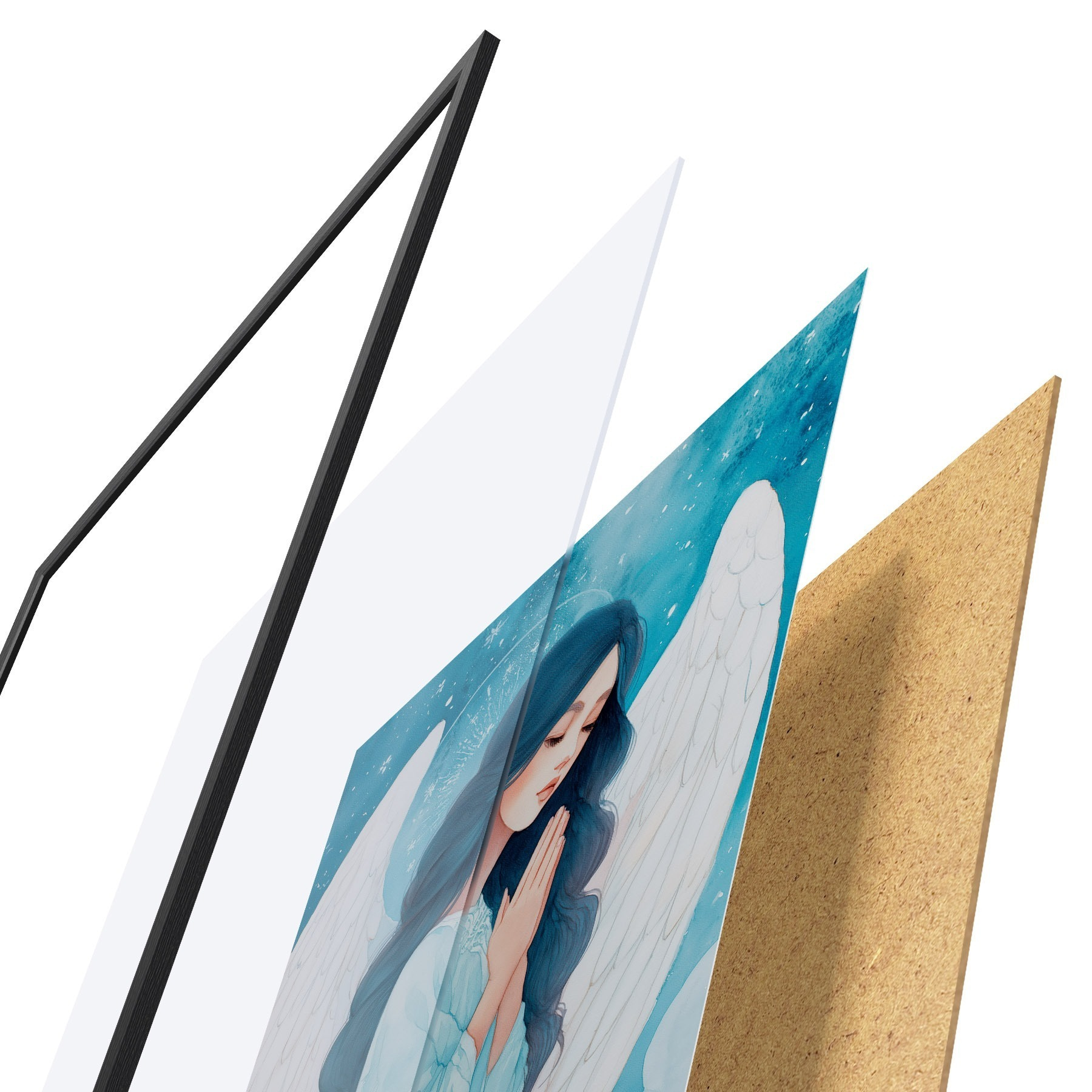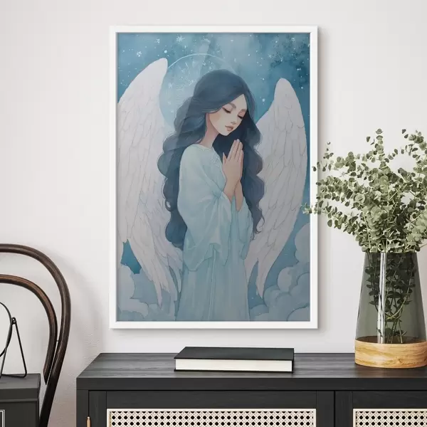 Постер на стіну Чарівна ілюстрація ангела серед хмар у біло-блакитній кольоровій гамі Nr f47095