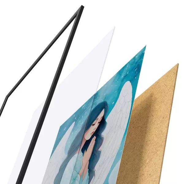 Постер складається з рами, оргскла, надрукованого зображення та підкладки з ДСП. Завдяки кріпленням на звороті плакат можна одразу ж повісити на стіну.