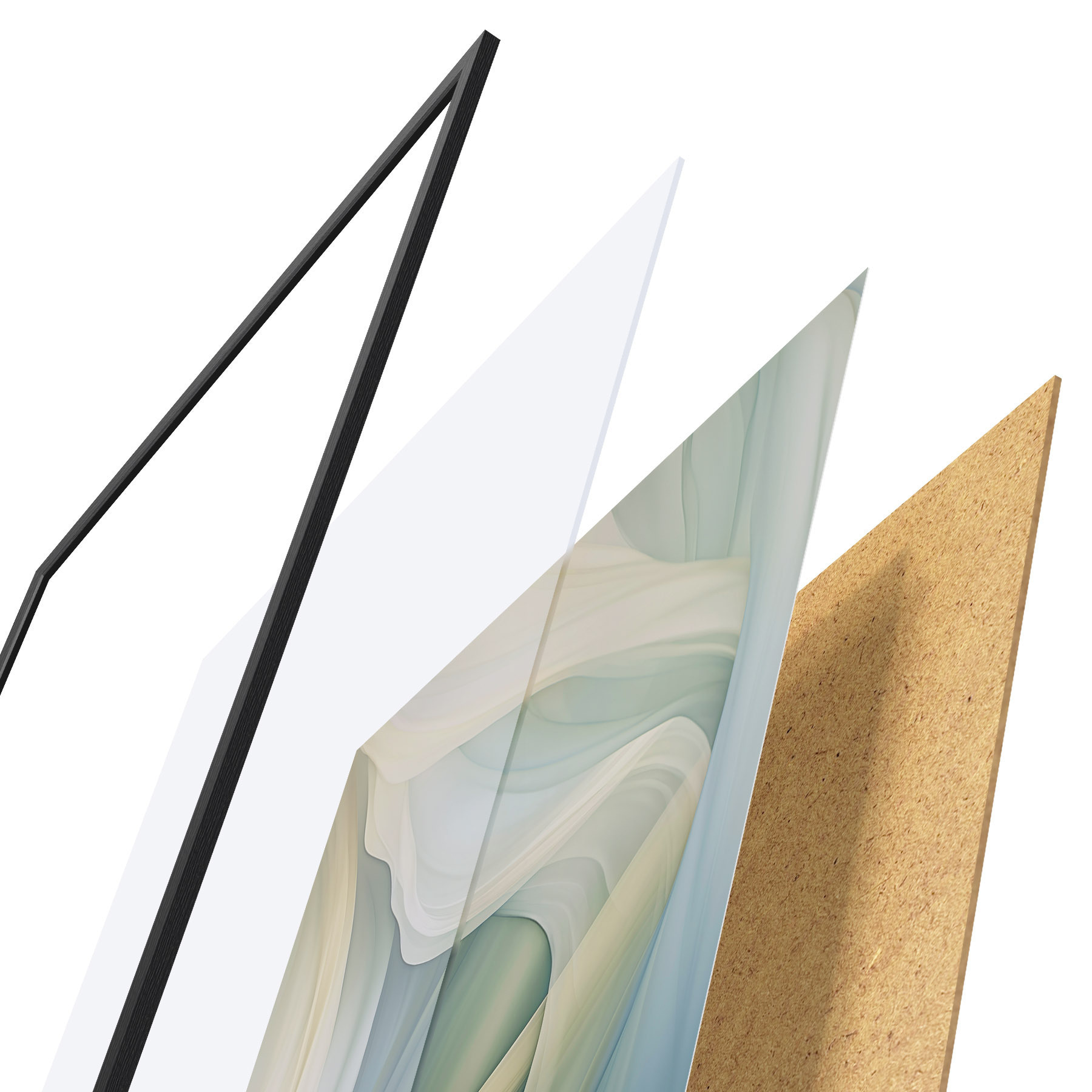 Постер складається з рами, оргскла, надрукованого зображення та підкладки з ДСП. Завдяки кріпленням на звороті плакат можна одразу ж повісити на стіну.
