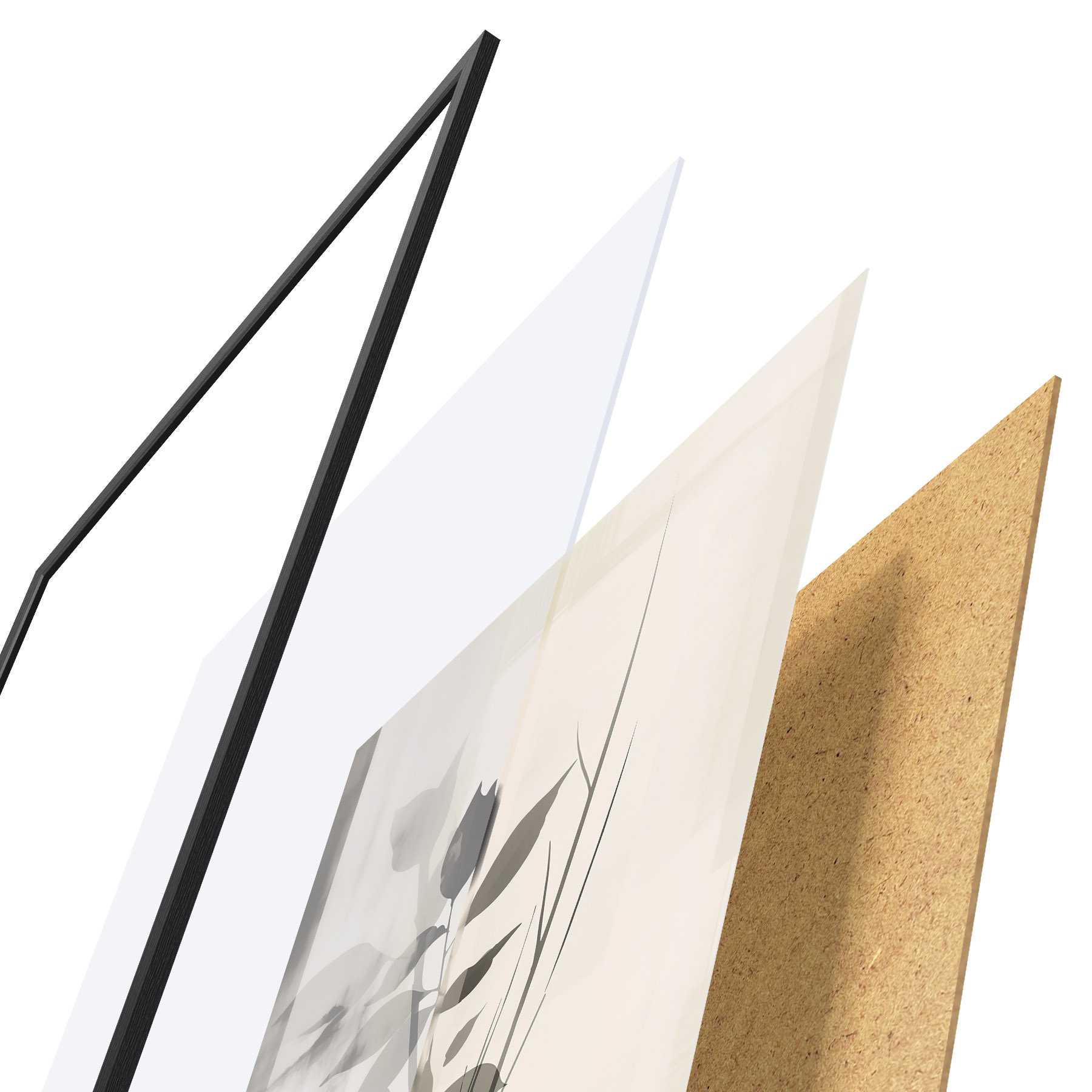 Постер складається з рами, оргскла, надрукованого зображення та підкладки з ДСП. Завдяки кріпленням на звороті плакат можна одразу ж повісити на стіну.
