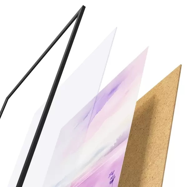 Постер складається з рами, оргскла, надрукованого зображення та підкладки з ДСП. Завдяки кріпленням на звороті плакат можна одразу ж повісити на стіну.