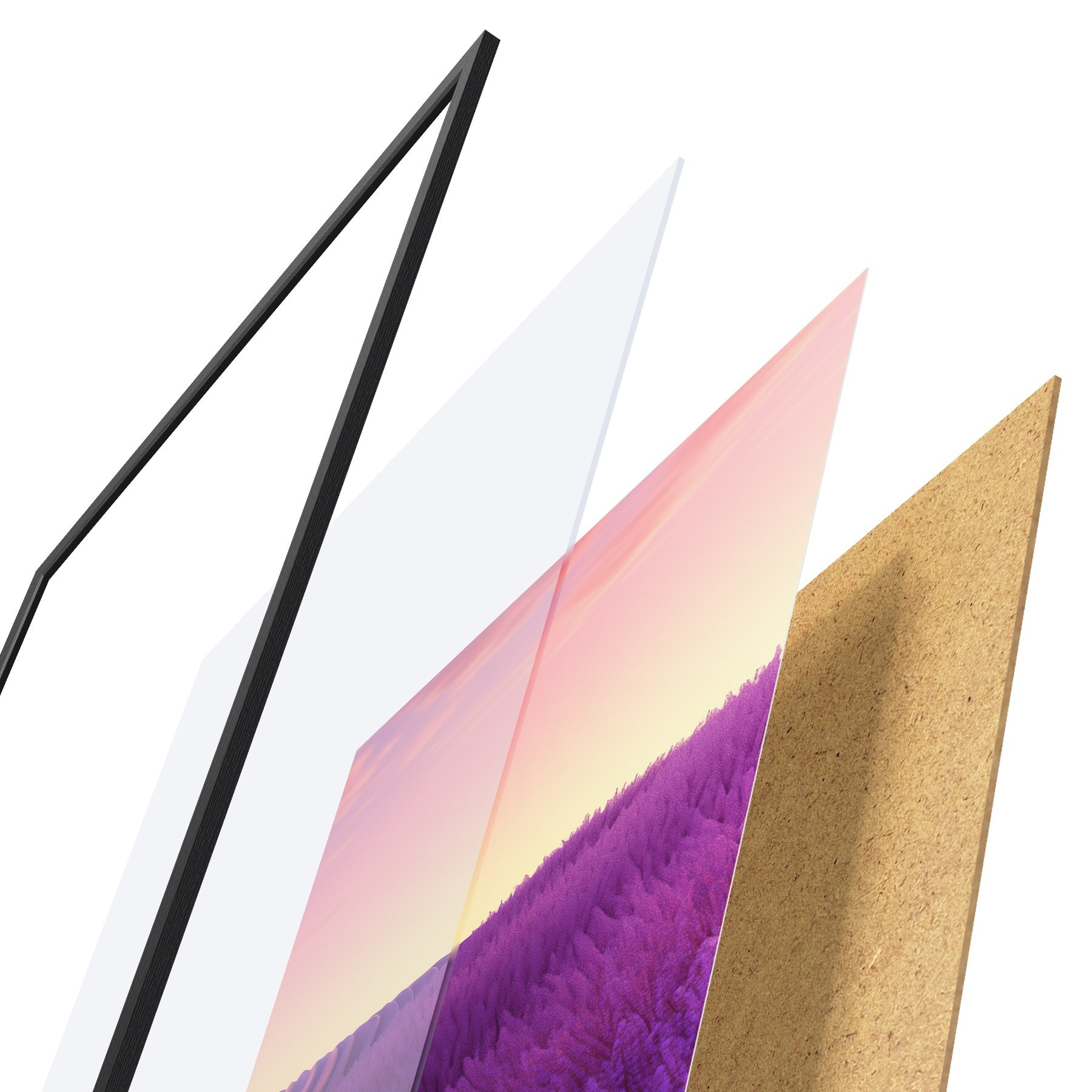 Постер складається з рами, оргскла, надрукованого зображення та підкладки з ДСП. Завдяки кріпленням на звороті плакат можна одразу ж повісити на стіну.