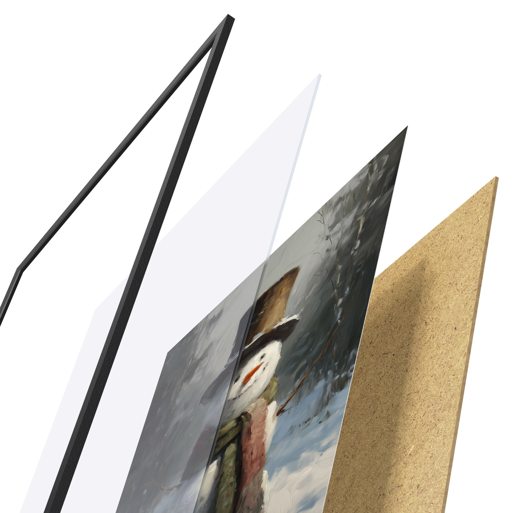 Постер складається з рами, оргскла, надрукованого зображення та підкладки з ДСП. Завдяки кріпленням на звороті плакат можна одразу ж повісити на стіну.