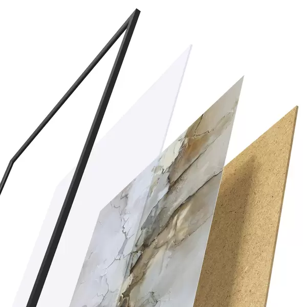 Постер складається з рами, оргскла, надрукованого зображення та підкладки з ДСП. Завдяки кріпленням на звороті плакат можна одразу ж повісити на стіну.