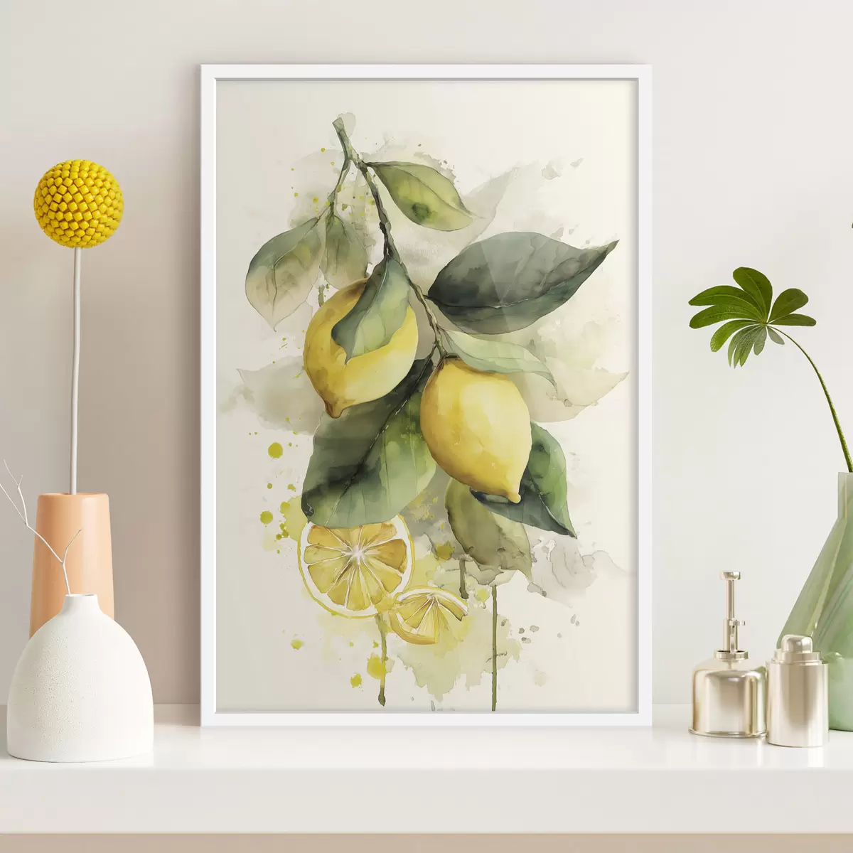 Постер на стіну гілка в стилі акварелі з лимонами Nr f47123