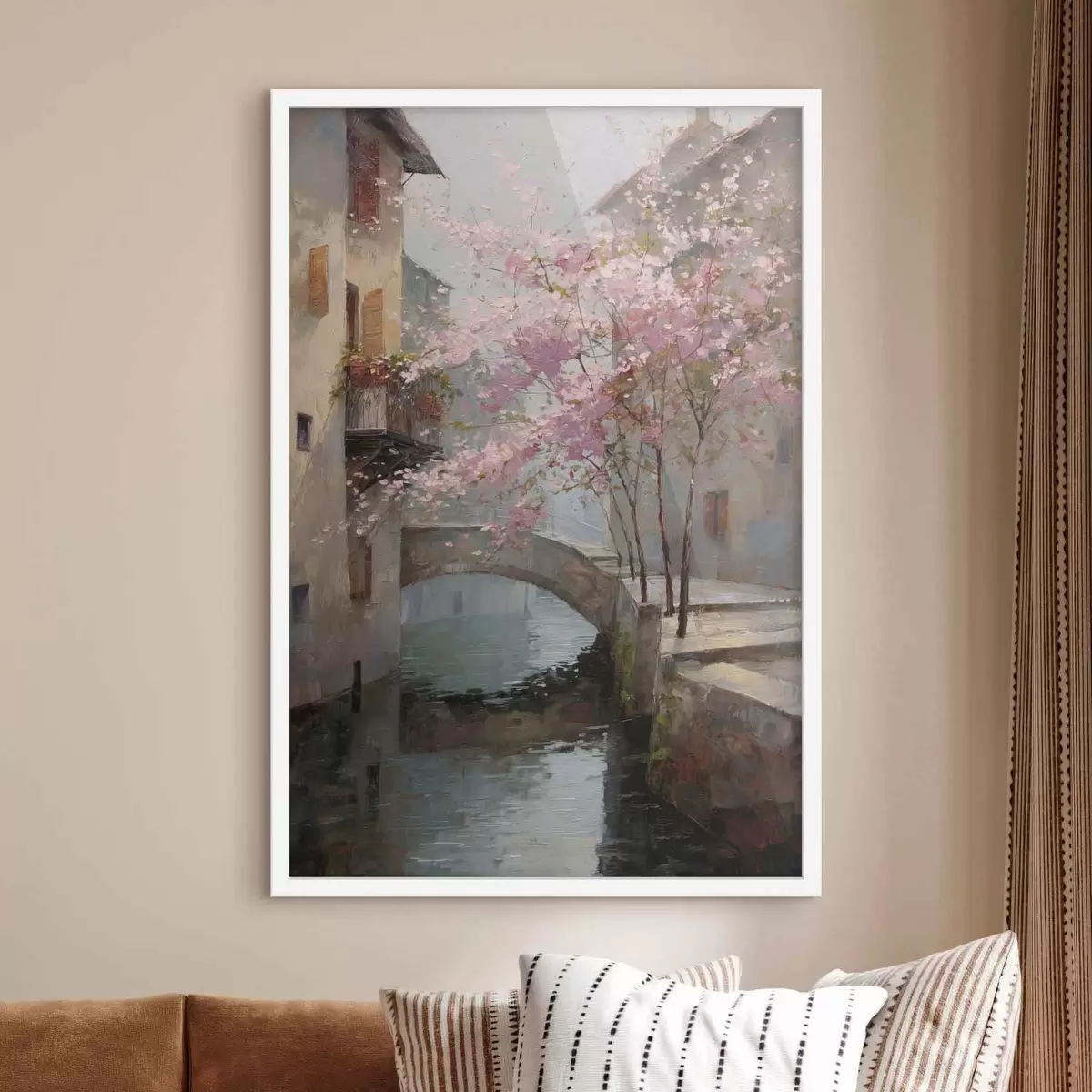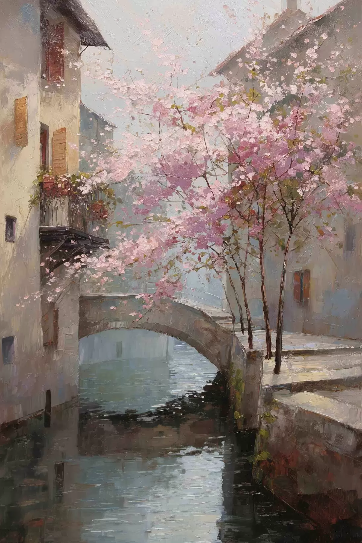 Постер на стіну романтичний міський пейзаж з квітучим деревом у стилі олійного живопису Nr f47127