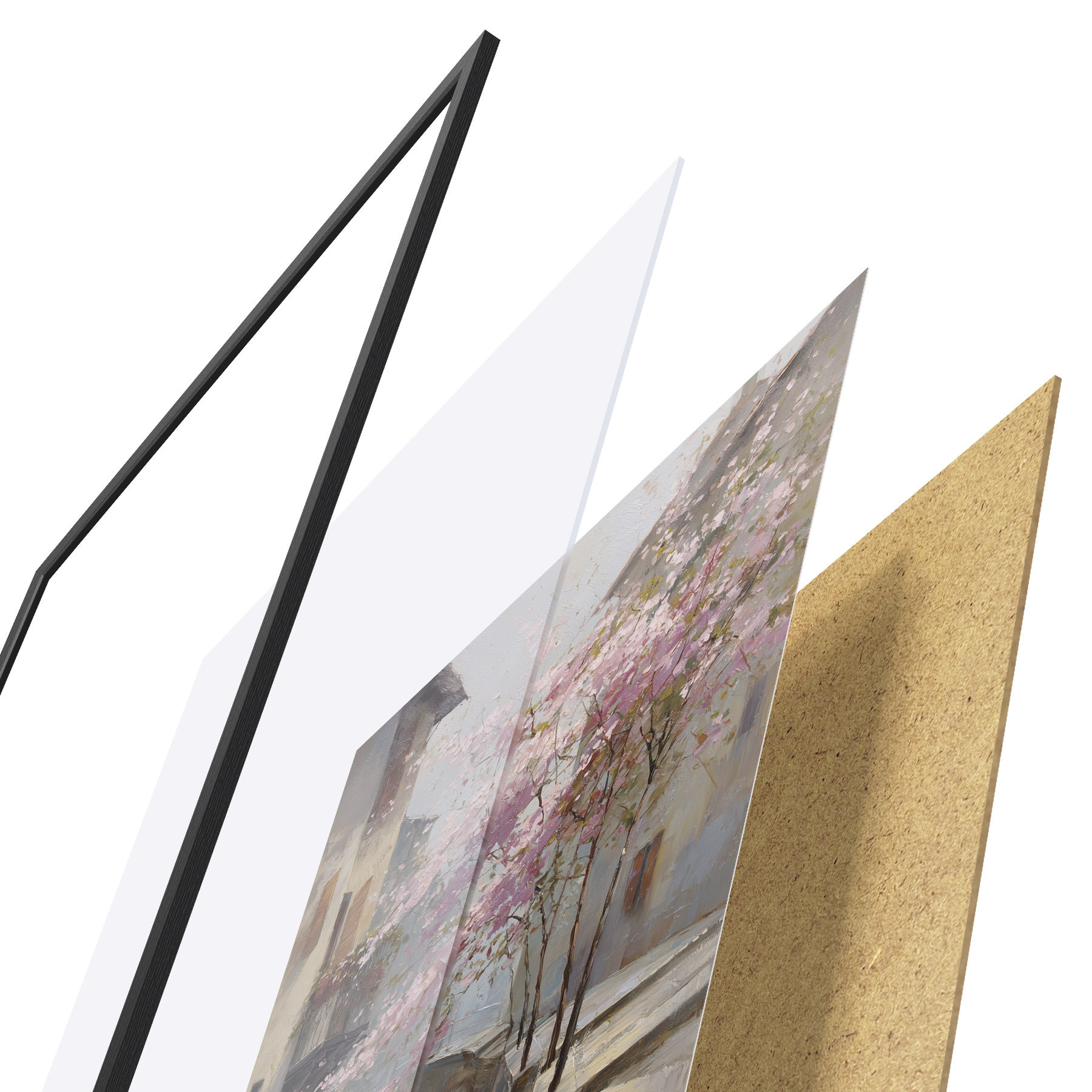 Постер складається з рами, оргскла, надрукованого зображення та підкладки з ДСП. Завдяки кріпленням на звороті плакат можна одразу ж повісити на стіну.