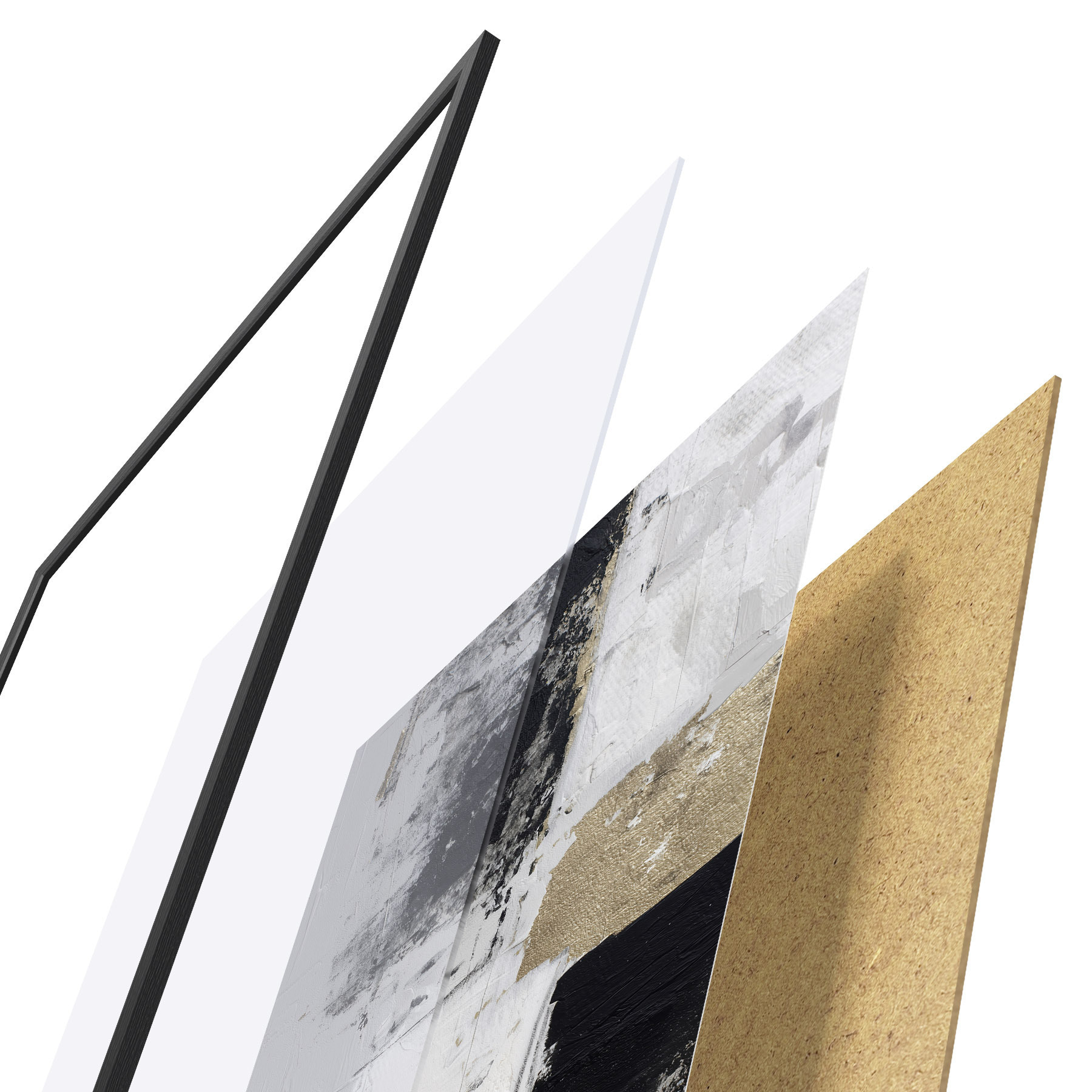 Постер складається з рами, оргскла, надрукованого зображення та підкладки з ДСП. Завдяки кріпленням на звороті плакат можна одразу ж повісити на стіну.