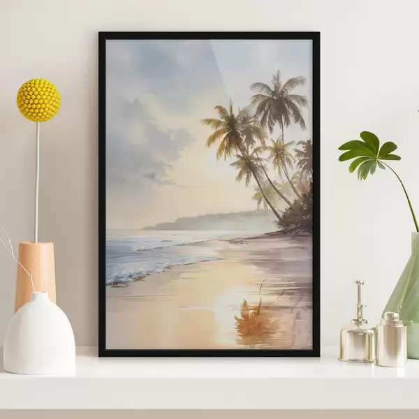 Постер на стіну захід сонця на пляжі острова в стилі акварелі Nr f47135