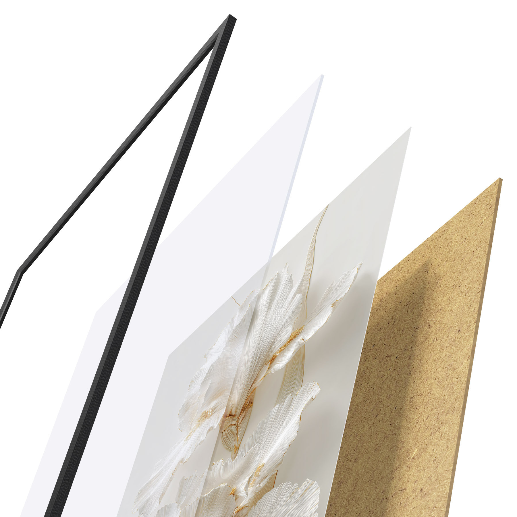 Постер складається з рами, оргскла, надрукованого зображення та підкладки з ДСП. Завдяки кріпленням на звороті плакат можна одразу ж повісити на стіну.