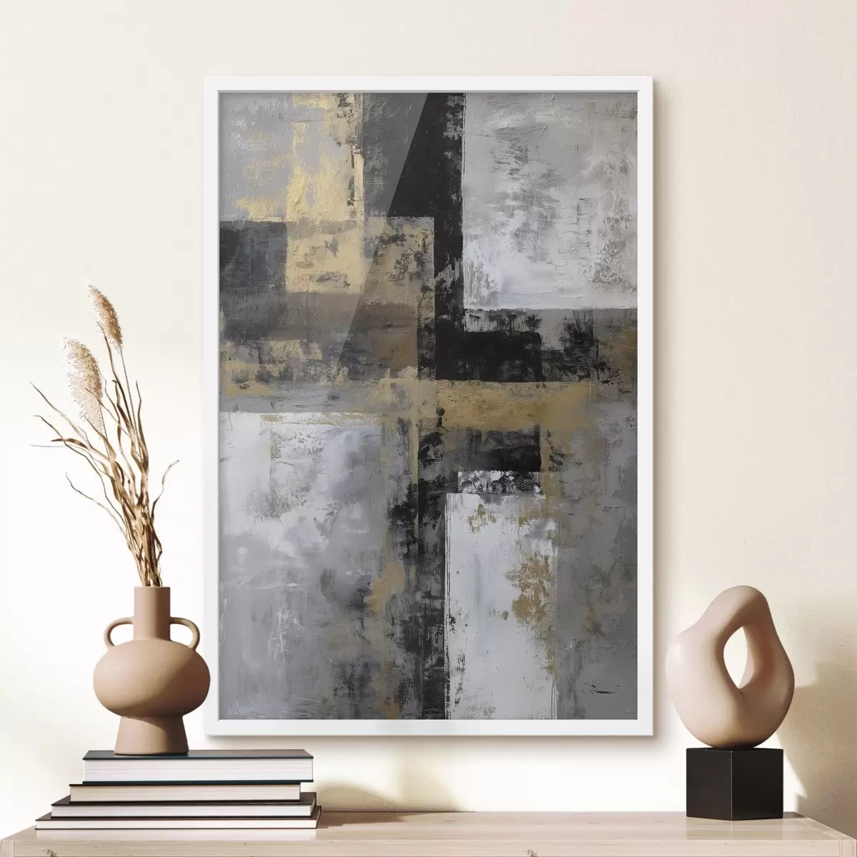 Постер на стіну сучасна текстурна абстракція в чорних, сірих і білих відтінках Nr f47139