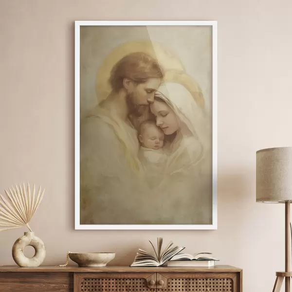 Постер на стіну Діва Марія та Йосип з немовлям Ісусом у стилі старовинної фрески Nr f47141