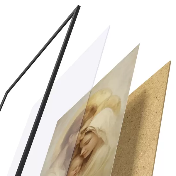 Постер складається з рами, оргскла, надрукованого зображення та підкладки з ДСП. Завдяки кріпленням на звороті плакат можна одразу ж повісити на стіну.