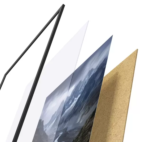 Постер складається з рами, оргскла, надрукованого зображення та підкладки з ДСП. Завдяки кріпленням на звороті плакат можна одразу ж повісити на стіну.