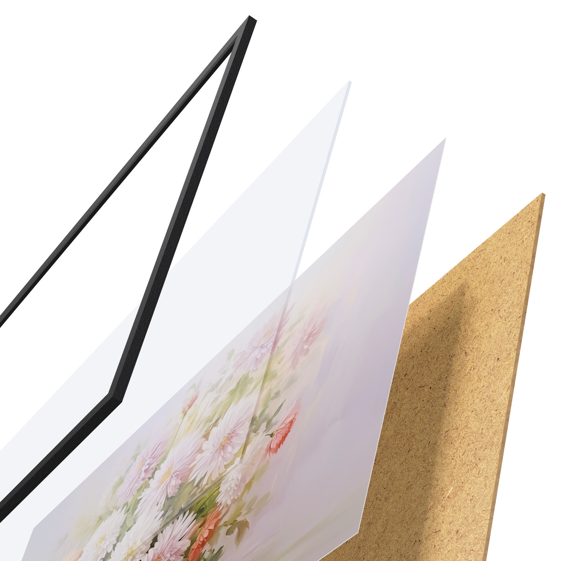 Постер складається з рами, оргскла, надрукованого зображення та підкладки з ДСП. Завдяки кріпленням на звороті плакат можна одразу ж повісити на стіну.