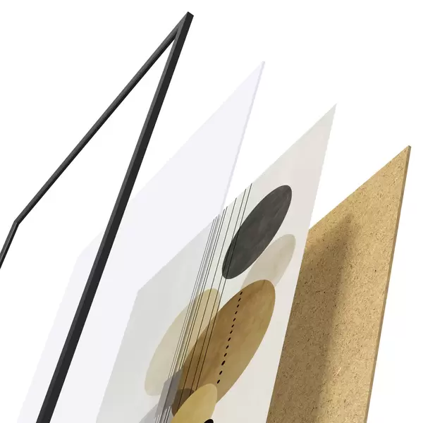 Постер складається з рами, оргскла, надрукованого зображення та підкладки з ДСП. Завдяки кріпленням на звороті плакат можна одразу ж повісити на стіну.