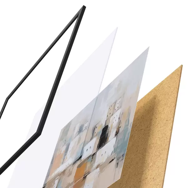 Постер складається з рами, оргскла, надрукованого зображення та підкладки з ДСП. Завдяки кріпленням на звороті плакат можна одразу ж повісити на стіну.