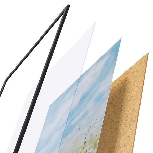 Постер складається з рами, оргскла, надрукованого зображення та підкладки з ДСП. Завдяки кріпленням на звороті плакат можна одразу ж повісити на стіну.