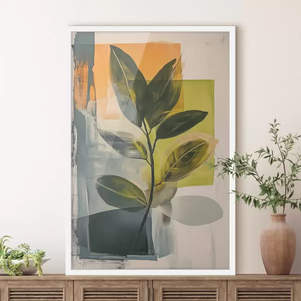Постер на стіну Гілка з листям на абстрактному тлі Nr f47249