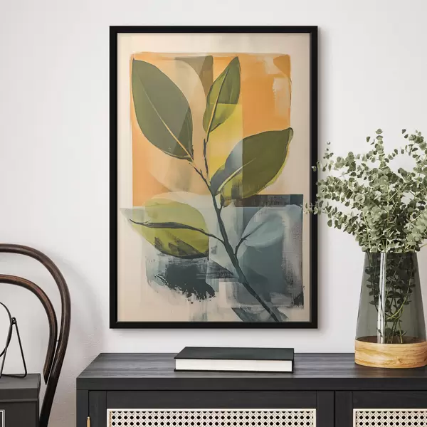 Постер на стіну Гілка з листям на абстрактному тлі Nr f47250
