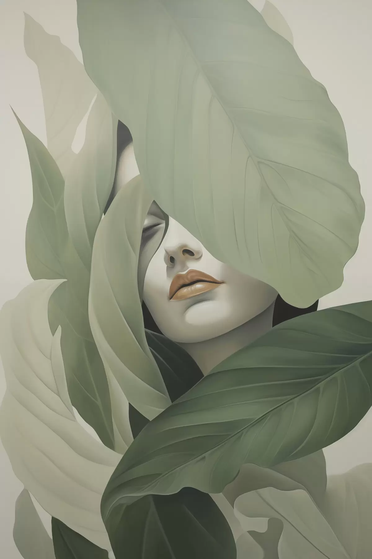 Постер на стіну Сюрреалістичний портрет дівчини серед листя Nr f47332