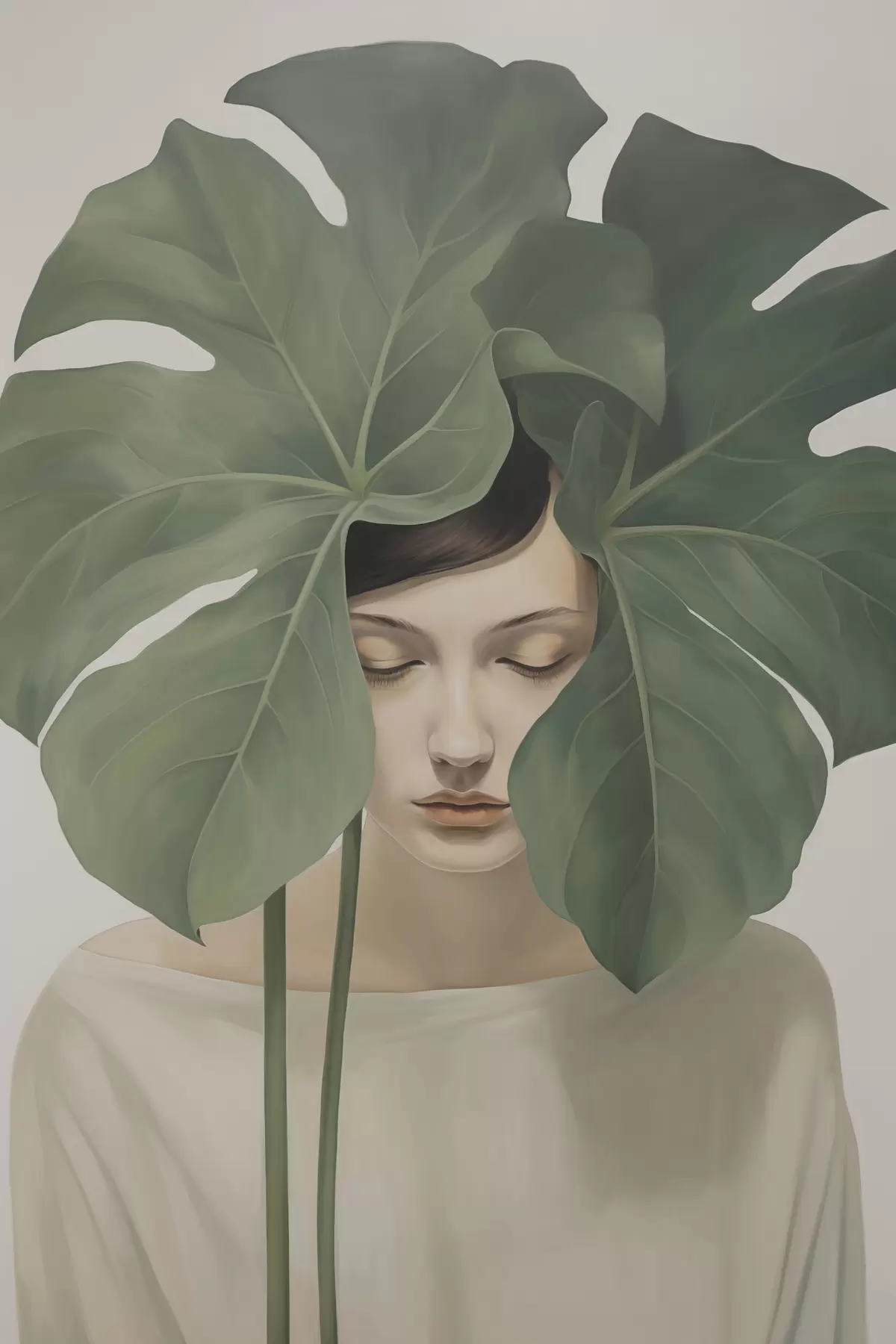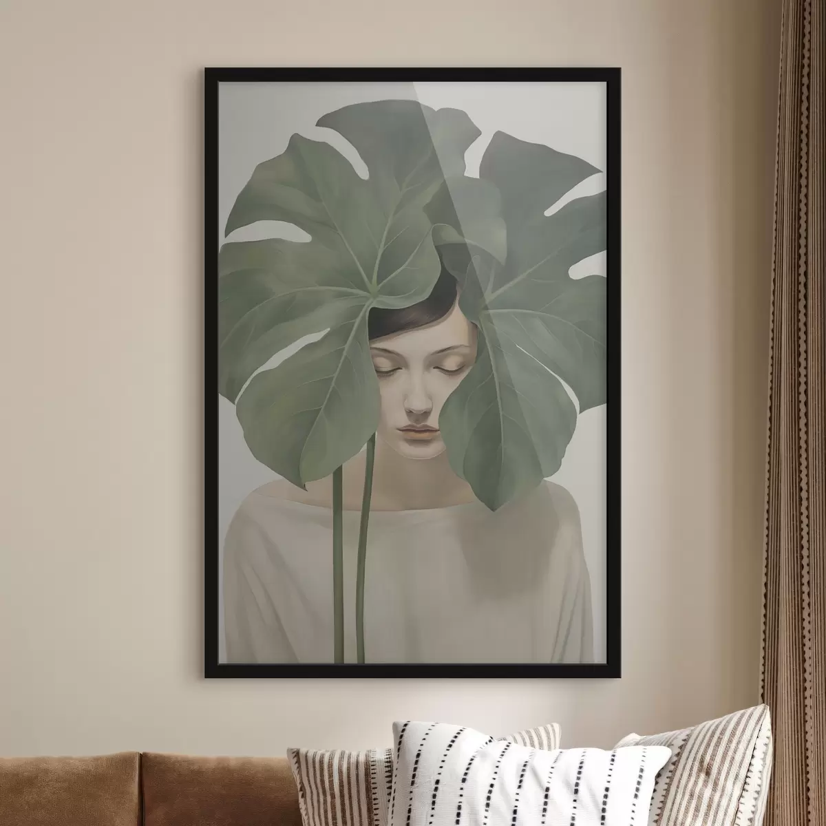 Постер на стіну Дівчина з тропічним листям Nr f47335